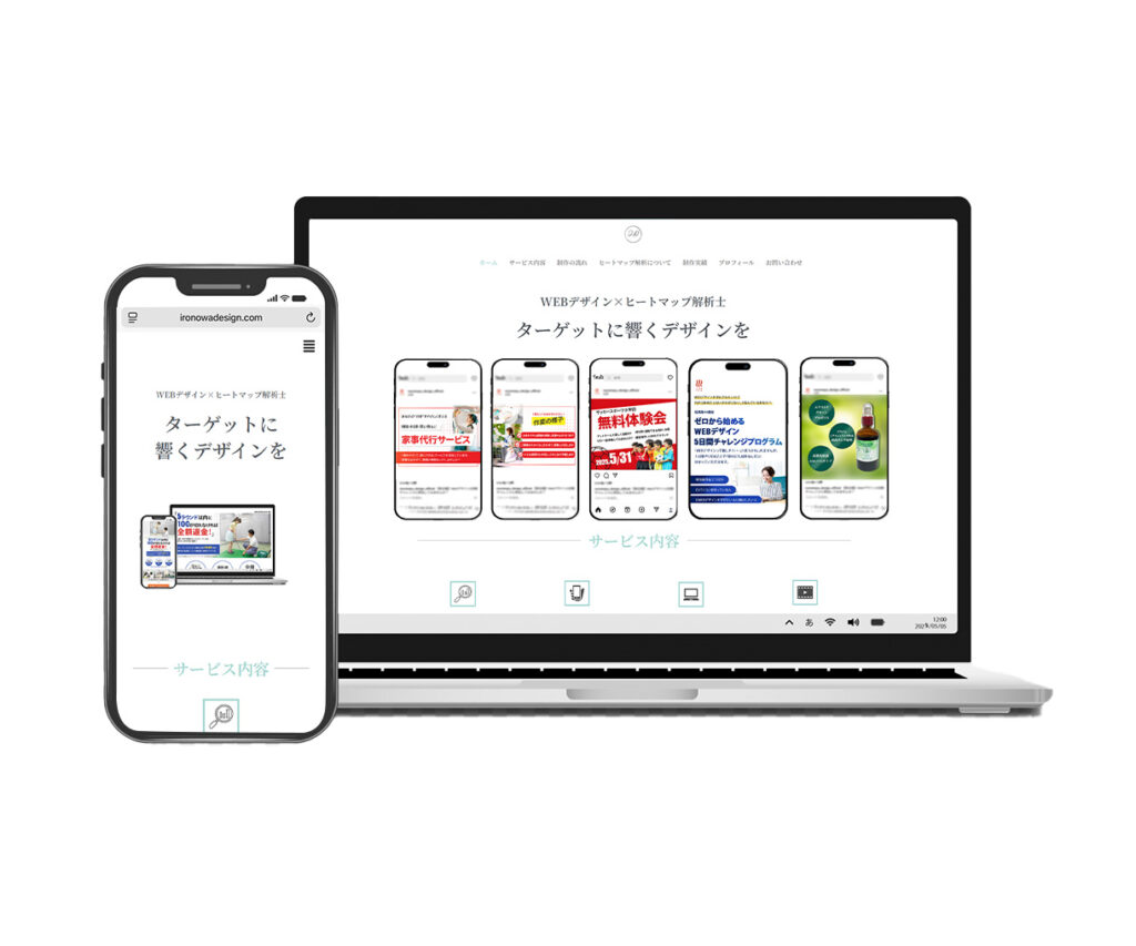 キャッチコピー「WEBデザイン×ヒートマップ解析士 ターゲットに響くデザイン」の通り、